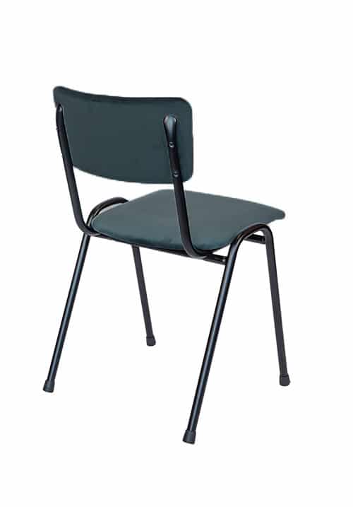 Stapelstoel Jort heeft een metalen frame in matzwarte fijn structuur en is voorzien van een luxe Riviera velvet stoffering in diverse kleuren.