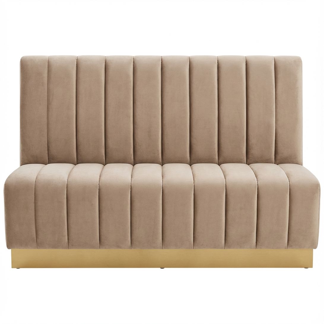 Straal pure luxe uit met de wandbank Catherine! Deze eyecatcher is voorzien van verticale stiksels in de rugleuning en op de zitting en heeft als kers op de taart een prachtig messingkleurig boxframe.