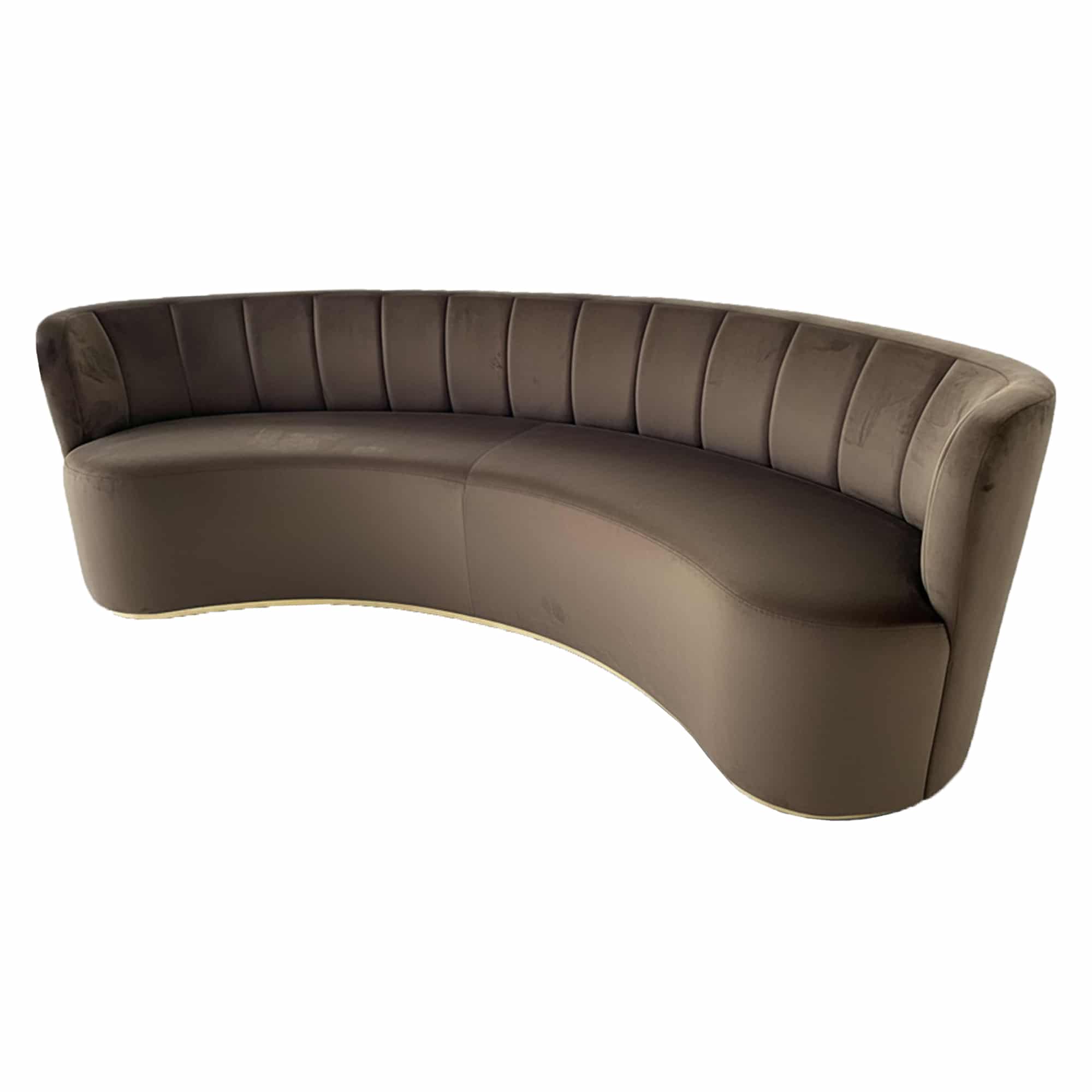 Bank Cynthia is een prachtige bank met fraaie ronde vormen. De combinatie van het boxframe met een messing afwerking en de fraaie verticale stiksels in de rugleuning maken van deze bank een echte eyecatcher.