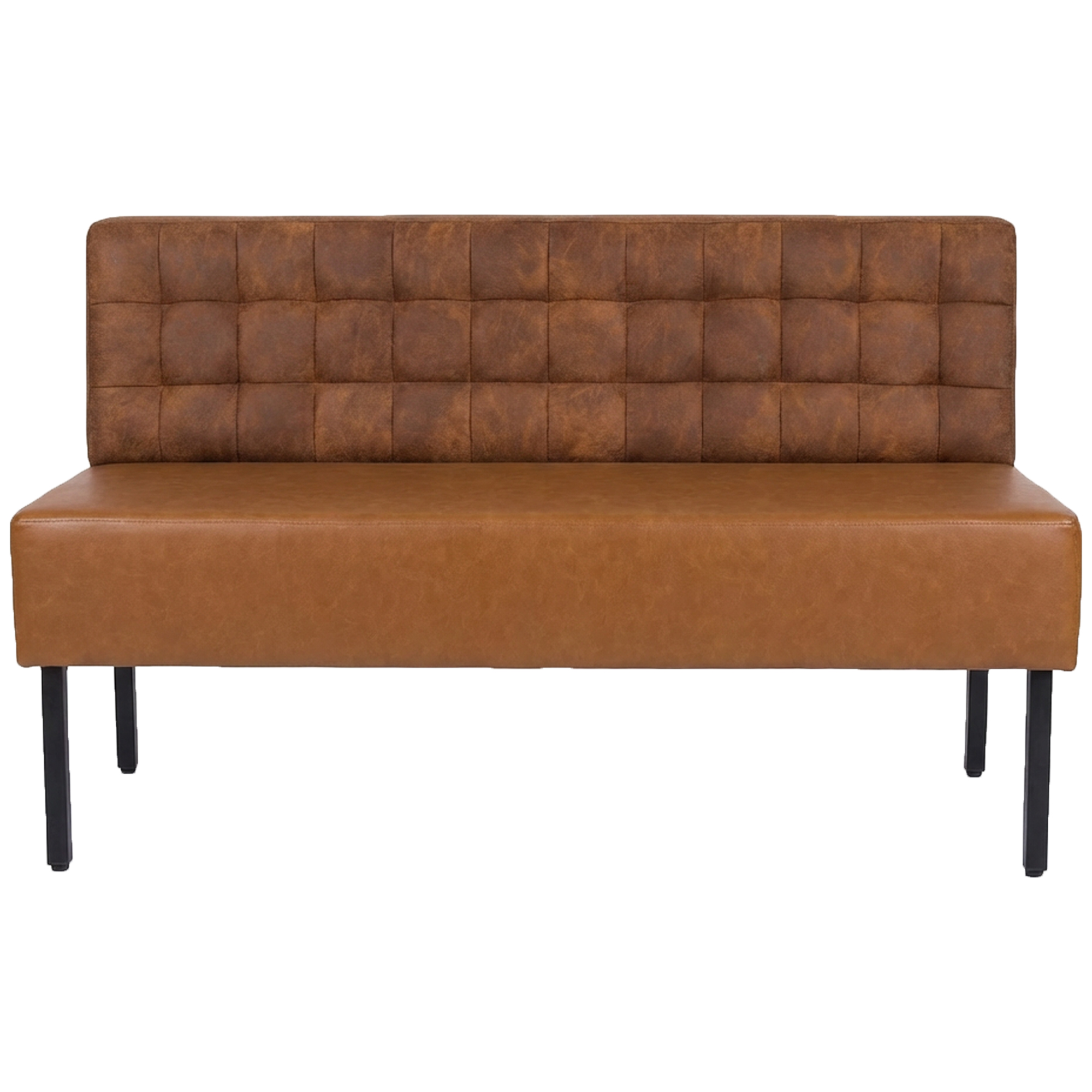 Prachtig stijlvolle gecapitonneerde bank Theo vintage gestoffeerd met een combinatie van Preston en New Outlander kunstleder op de zitting. De bank heeft zwart metalen poten.