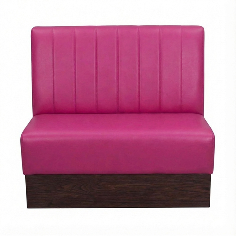 Stijlvolle wandbank met boxframe, gestoffeerd met het uiterst stevige Amalfi kunstleder met verticale stiksels in de rugleuning.